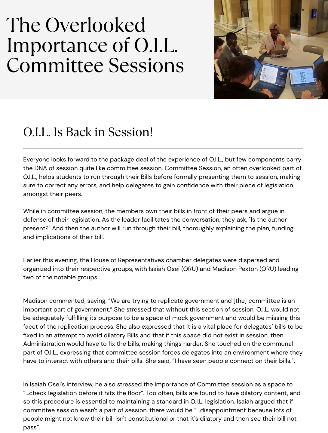 The Overlooked Importance of O.I.L. Committee Sessions November 15, 2025 Press News 0 Journalist: Destiny Lugo (ORU)